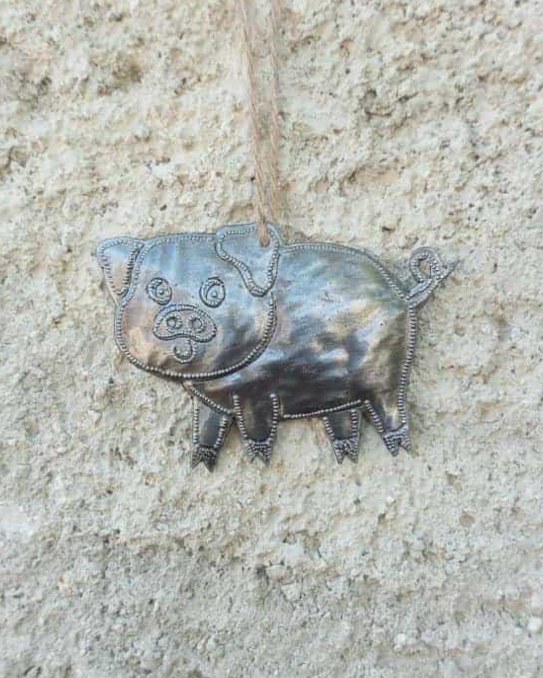 Die liebevoll gestalteten kleinen Schweinchen werden in Haiti in fairer Handarbeit aus recyceltem Metall gefertigt. Mit jedem Stück unterstützt du Kunsthandwerker vor Ort und trägst dazu bei, sichere Arbeitsplätze und nachhaltige Perspektiven zu schaffen.